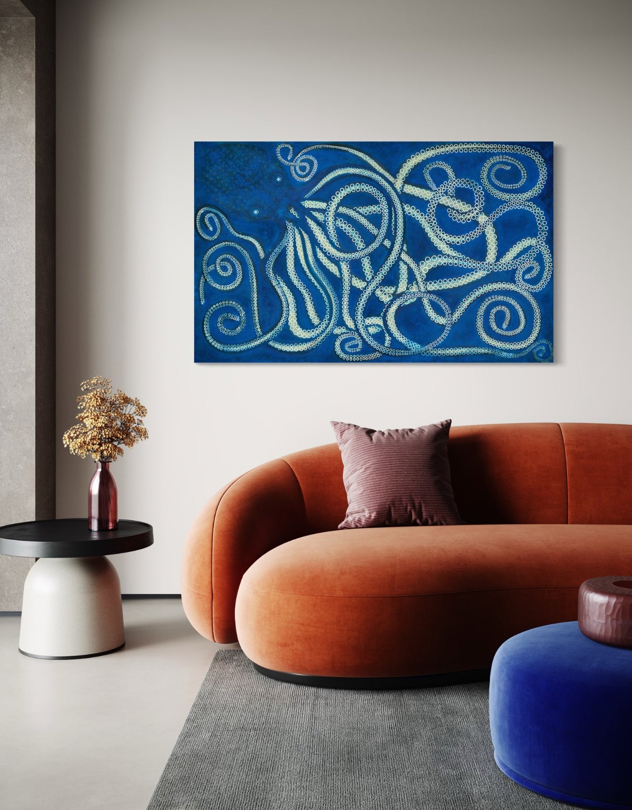 Seth’s bold, sophisticated work transforms any space into a striking focal point, blending playfulness with refinement.