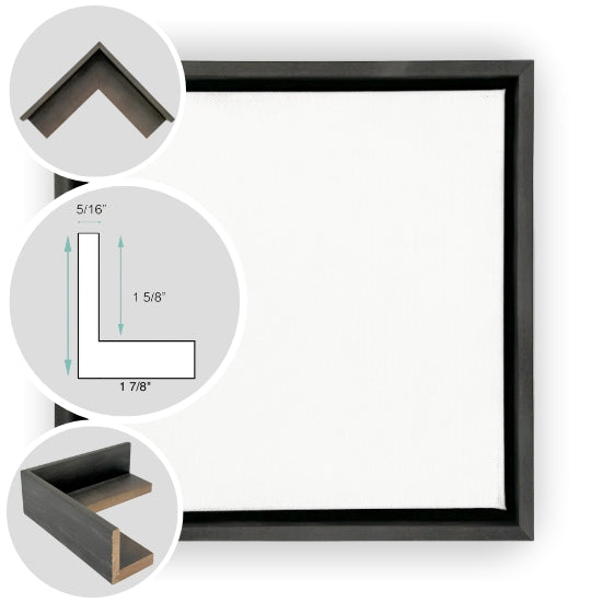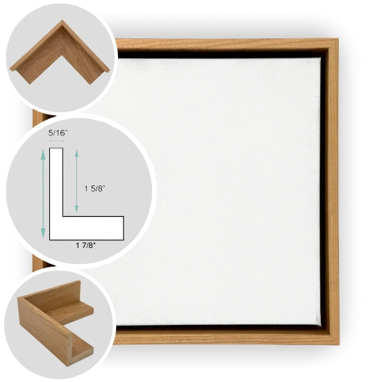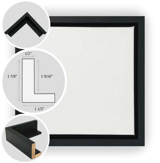 Whether in natural cherry, white maple, warm walnut, or the striking ebonized finish, the Seaport floater frame elevates your artwork with effortless sophistication and a distinctly modern edge.