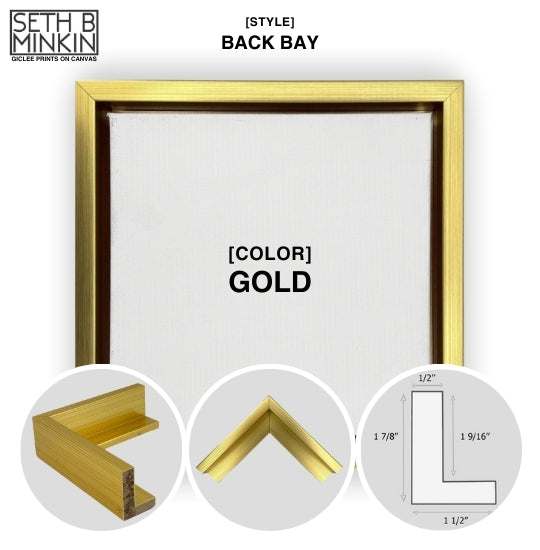 The Back Bay floater frame offers a clean, modern way to showcase your favorite Seth B. Minkin giclee on canvas print. With its square edges and understated design, this frame lets simplicity take center stage. Available in a range of finishes—white, black, gold, and champagne—this frame is versatile enough to complement any interior style.