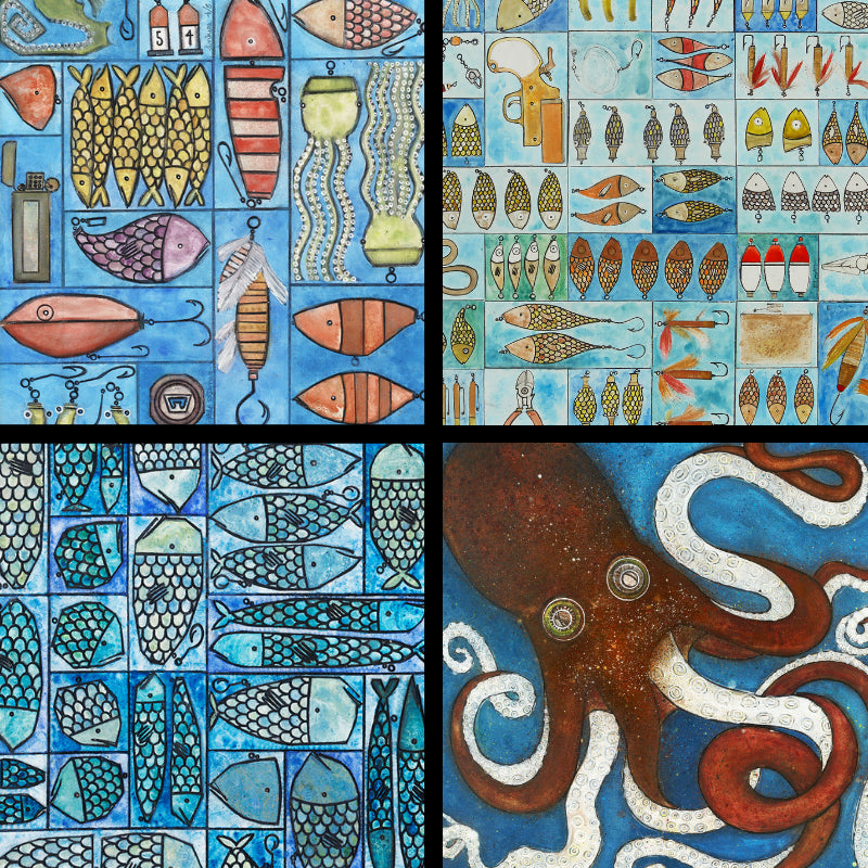 Dive into a world of salt, spray, and endless blue with Seth’s ocean-inspired pieces. From the mythic drama of Kracken to the intricate composition of Tackle Box, this collection captures the majesty and mystery of marine life and nautical lore.
