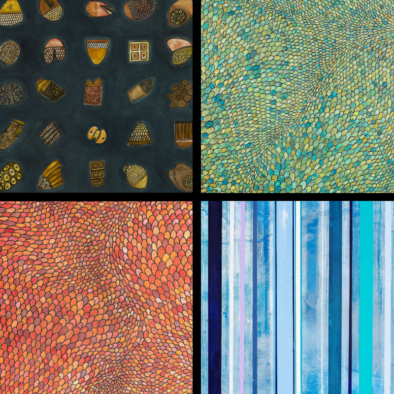 Clean lines, bold color, and thoughtful spatial rhythm make these works ideal for contemporary settings or layered art walls. They offer just enough structure to ground a space—while still leaving room for interpretation and creative freedom.